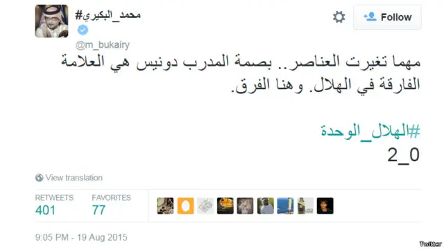 وكان فريق الهلال قد فاز، الأسبوع الماضي، بكأس بطولة السوبر السعودي بعد التغلب على غريمه التقليدي نادي النصر، بطل الدوري وحامل اللقب السابق، في مباراة أقيمت بالعاصمة البريطانية لندن.