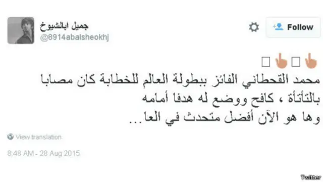 حقق مقطع فيديو لخطاب مترجم لبطل العالم في الإلقاء والخطابة السعودي، محمد القحطاني، أكثر من نصف مليون مشاهدة منذ تحميله على موقع يوتيوب مطلع هذا الأسبوع.