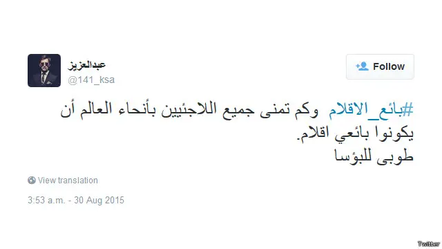 في حين أشار آخرون إلى استمرار معاناة اللاجئين في بقاع أخرى من العالم، فيقول المستخدم عبدالعزيز: "وكم تمنى جميع اللاجئين بأنحاء العالم أن يكونوا بائعي أقلام. طوبى للبؤساء".