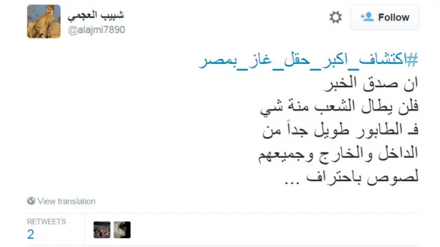 وظهر هاشتاغ اكتشاف_أكبر_حقل_غاز_بمصر إلى جانب هاشتاغ #اقترح_اسم_لبير_الغاز_الجديد في أكثر من 43 ألف تغريدة.