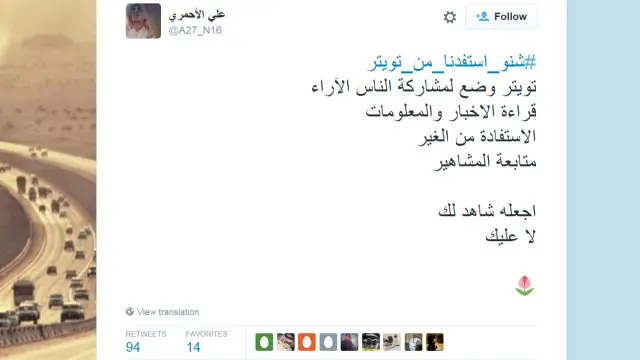 وقال المستخدم علي الأحمري عبر الهاشتاغ: "تويتر وُضِع لمشاركة الناس الآراء، قراءة الاخبار والمعلومات، والاستفادة من الغير، ومتابعة المشاهير".