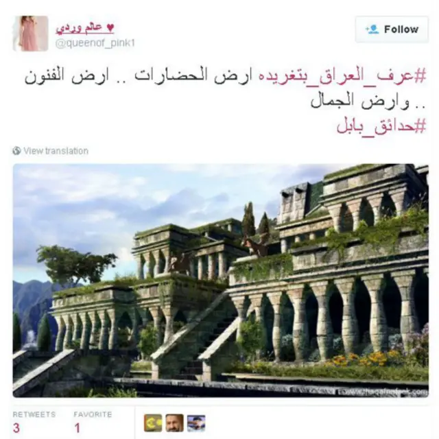 فمن المغردين من تحدث عن العمارة العراقية واللباس التقليدي، والحضارات المتعاقبة على العراق، ليربو عدد التغريدات على 30 ألف تغريدة. فكتب خالد الطييب قائلا: " بلاد المتنبي والجاحظ وابن الهيثم وغيرهم، ممن كان لهم دور في الشعر واللغة والأدب والطب والاجتماع .. لله درّ العراق"