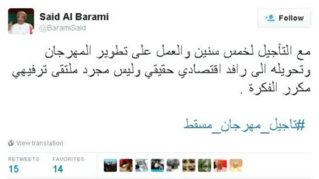 أطلق مغردون عمانيون هاشتاغ بعنوان "#تأجيل_مهرجان_مسقط " طالبوا من خلاله تأجيل أو إلغاء مهرجان مسقط التراثي والمقرر انطلاقه مطلع العام المقبل.