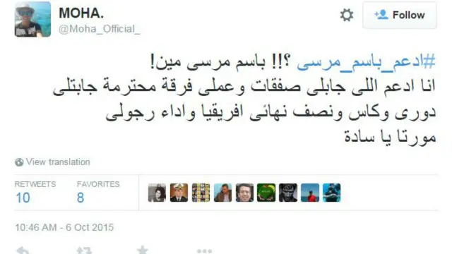 دشن مشجعو نادي الزمالك هاشتاغ #ادعم_باسم_مرسي لتأكيد دعمهم لمهاجم الفريق باسم مرسي في خلافه مع رئيس النادي مرتضى منصور.