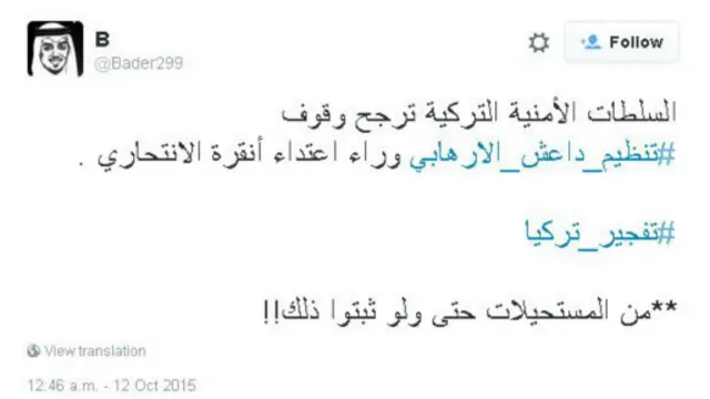 كما أشار بعض مستخدمي مواقع التواصل الاجتماعي في الشرق الأوسط، خاصة داخل تركيا، إلى احتمالية ضلوع الحكومة التركية في التفجير، إذ أن أحد منظمي المسيرة كان حزب الشعوب الديمقراطي المعارض.
