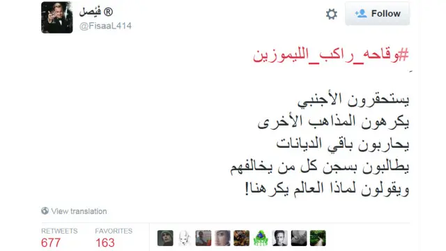 وجاءت معظم التغريدات منتقدة لسلوك راكب الليموزين، الذي وصف العديد تصرفه بالطائفي.