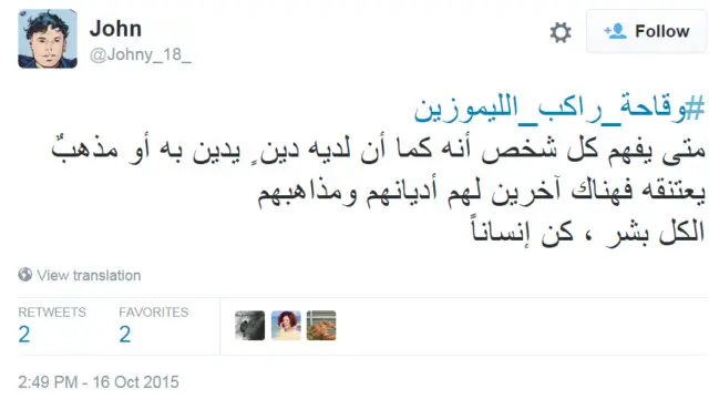 تداول مغردون هذا الهاشتاغ في عدة دول عربية أبرزها السعودية، مع مقطع فيديو يظهر فيه شخص قيل إنه مواطن سعودي سني، يركب سيارة أجرة (ليموزين)، مهددا سائق السيارة الشيعي.