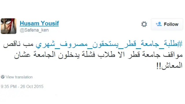 طالب الطلاب الجامعيون في قطر بالحصول على راتب شهري للاستعانة به على تكاليف الدراسة من خلال التفاعل على هاشتاغ #طلبة_جامعة_قطر_يستحقون_مصروف_شهري.