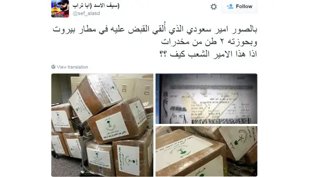 تفاعل مستخدمو تويتر في لبنان واليمن مع أخبار القبض على أحد الأمراء السعوديين في بيروت بتهمة محاولة تهريب حبوب الكبتاغون المخدرة إلى السعودية على متن طائرة خاصة.