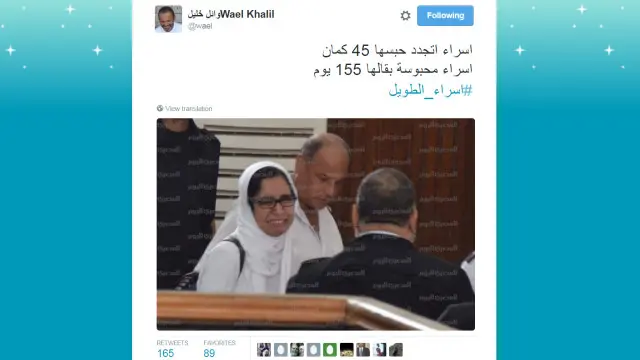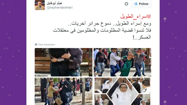 نبدأ تقريرنا اليوم من مصر، مع استمرار اهتمام مستخدمي مواقع التواصل الاجتماعي بداخل مصر وخارجها بقضية الناشطة إسراء الطويل، والتي انتشرت صور مؤثرة لها وهي تبكي بداخل قاعة محكمة مصرية إثر تجديد حبسها على ذمة عدة قضايا، منها الإنتماء إلى جماعة إرهابية، لـ45 يوما.