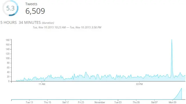 وخلال أقل من ستة ساعات من تدشين الهاشتاغ، وردت عليه أكثر من ستة آلاف تغريدة، كما يظهر الرسم التحليلي التالي.