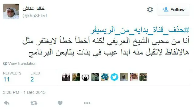 دعا مغردون عبر هاشتاغ #حذف_قناه_بداية_من_الريسيفر إلى حذف قناة "بداية" الإسلامية بعد انتشار مقطع مصور للشيخ محمد العريفي وهو يستخدم لفظاً اعتبروه غير لائق. لكن آخرين رفضوا هذه الدعوات قائلين إن هناك مبالغة في ردة الفعل تجاه الشيخ العريفي.