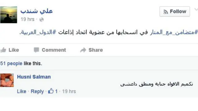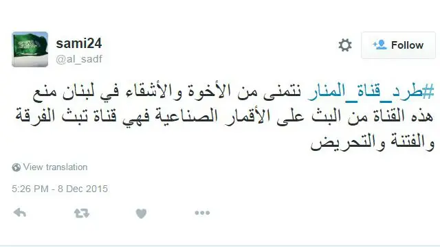 تفاعل مغردون عرب مع خبر استبعاد قناة المنار التابعة لحزب الله من عضوية اتحاد إذاعات الدول العربية من خلال تدشين هاشتاغ #طرد_قناة_المنار.