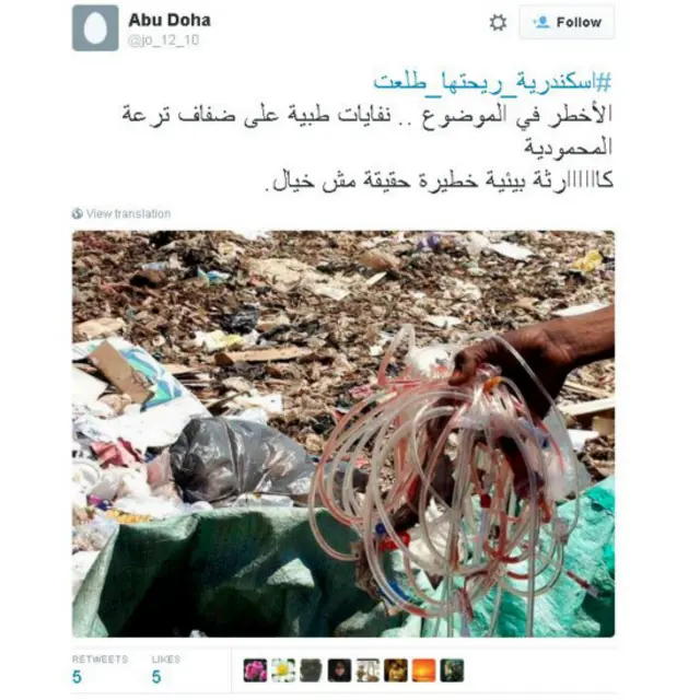 وتجاوز عدد التغريدات التي تحدثت عن تراكم النفايات في مدينة الإسكندرية 13 ألف تغريدة، نشر خلالها مغردون صورا للقمامة التي تراكمت في شوارع المدينة.