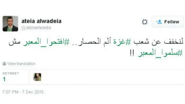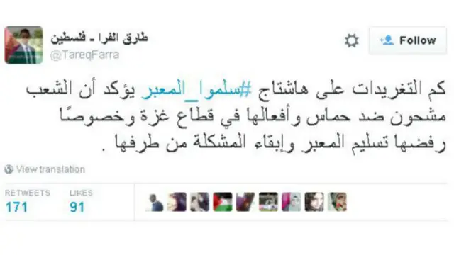 ويدعو مطلقو الهاشتاغ حركة حماس إلى تسليم المعبر للسلطة الفلسطينية،كما تطالب السلطات المصرية.