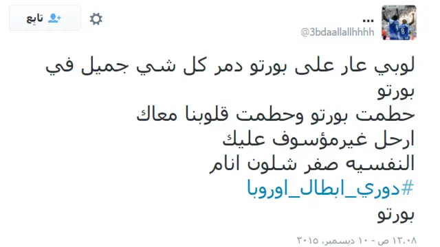 ودشن مستخدمون عدداً من الهاشتاغات أبرزها #دوري_ابطال_اوروبا ليفوق العدد الكلي للتغريدات 16 ألف تغريدة.