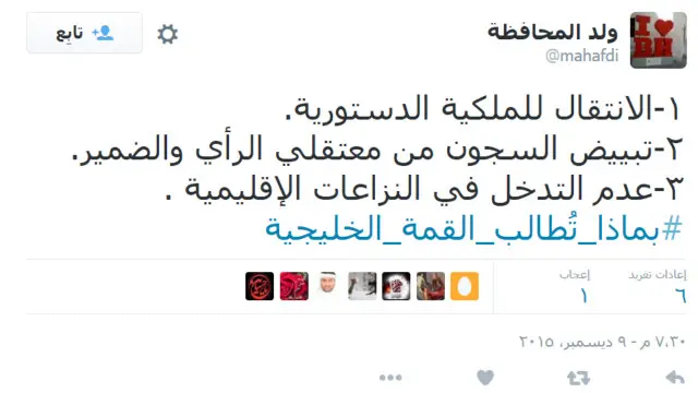 اهتم مستخدمو مواقع التواصل الاجتماعي في الوطن العربي بقضايا مختلفة أبرزها قمة مجلس التعاون الخليجي في الرياض. كما رحب مغردون بإلغاء عقود عربية مع المرشح الرئاسي الجمهوري الأمريكي دونالد ترامب جراء دعوته لحظر دخول المسلمين إلى أمريكا.