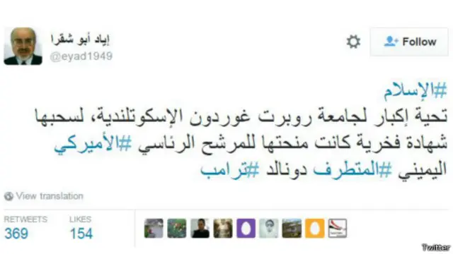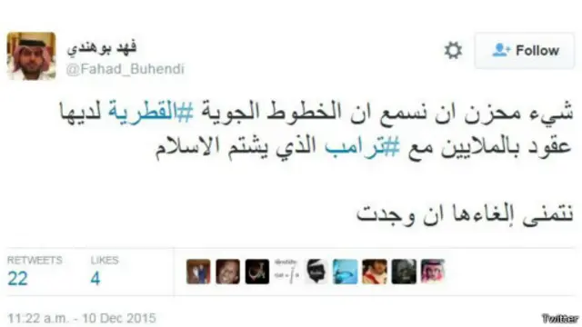 وانتقد آخرون شركات عربية كبرى لديها عقود مع ترامب، ولم تقم بإلغائها.