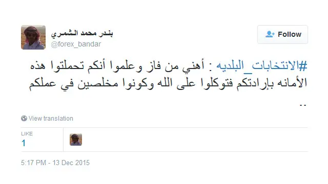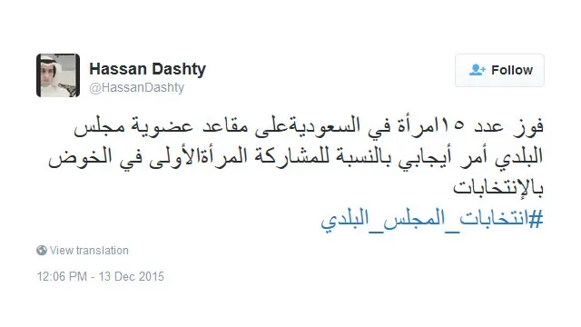 تواصل اهتمام مستخدمي مواقع التواصل الاجتماعي السعوديين بنتائج انتخابات المجالس البلدية، والتي انتهت بفوز 13 امرأة في عدد من المناطق، من بينها مكة والجوف والإحساء.