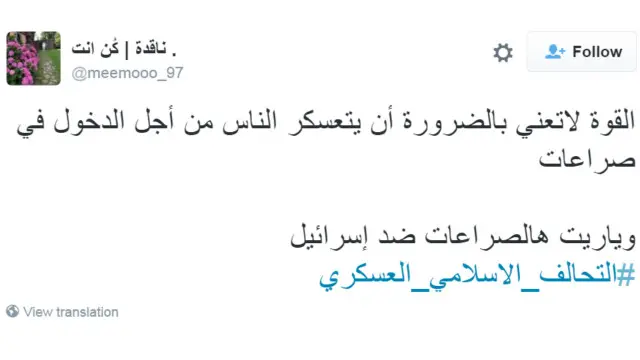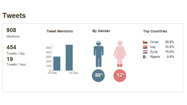 ومن الدول العربية التي امتنعت عن الاشتراك سلطنة عمان والجزائر والعراق وسوريا، ونعرض عليكم أدناه تحليلا للتغريدات التي جاءت عبر هاشتاغ #التحالف_الاسلامي_العسكري من تلك البلاد.