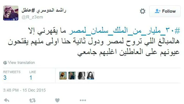 ودشن مستخدمو تويتر #٣٠_مليار_من_الملك_سلمان_لمصر الذي رحب من خلاله الكثيرون بالخطوة وأشادوا بالموقف السعودي، معتبرين أنها تؤكد متانة العلاقة بين البلدين.
