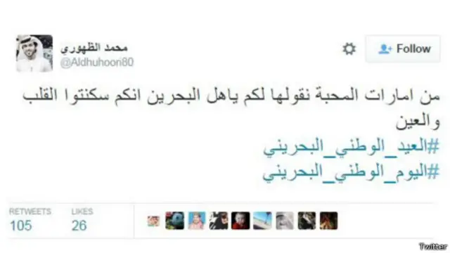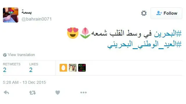 احتفى مغردون في العالم العربي بالعيد الوطني للبحرين الذي يوافق 16 من ديسمبر / كانون الأول من كل عام وذلك من خلال إطلاق #اليوم_الوطني_البحريني و #البحرين_تحتفل ليتم ذكر المناسبة في أكثر من 32 ألف تغريدة.