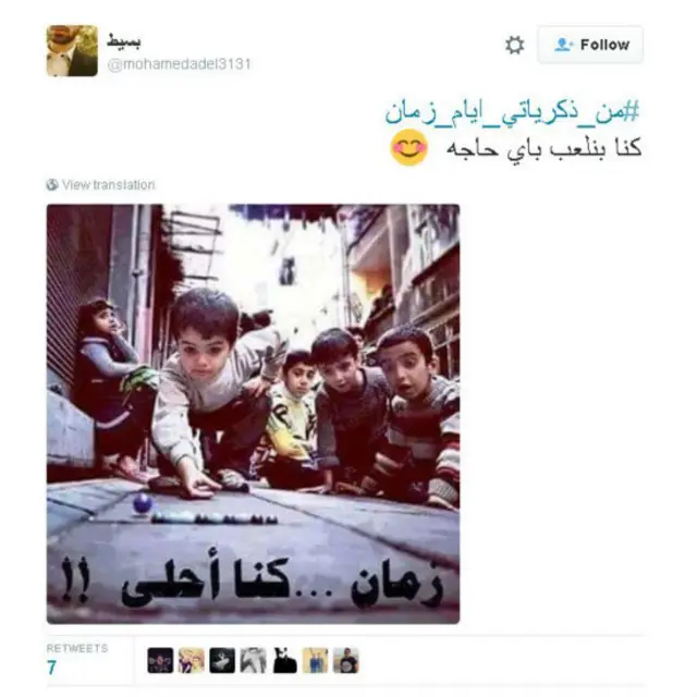 استعاد مغردون ذكرياتهم القديمة خلال مرحلة الطفولة فدشنوا هاشتاغ #من_ذكرياتي_أيام_زمان، الذي ظهر في حوالي 7 آلاف تغريدة.