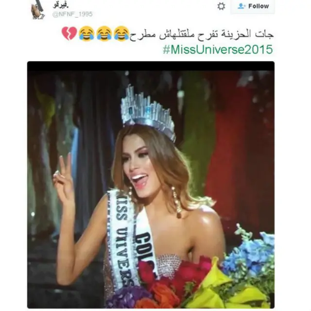 وفي ما يلي نعرض نماذج من تعليقات المغردين التي جاءت عبر هاشتاغ "MissUniverse2015" :