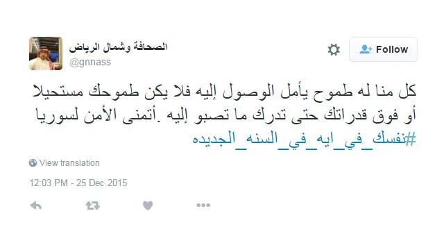 وتحدث العديد من المغردين عن تمنياتهم بإحلال السلام وإنهاء الصراعات الدائرة في الشرق الأوسط.