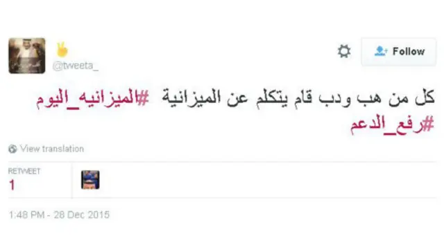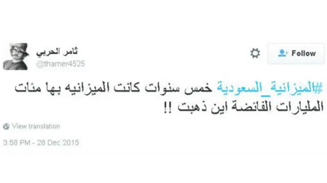 وعلى إثرها نشط هاشتاغ #الميزانية_السعودية_2016 الذي ناقش من خلاله مغردون ما شملته الميزانية الجديدة من قرارات لتتنوع آراءهم بين ترحيب ورفض.