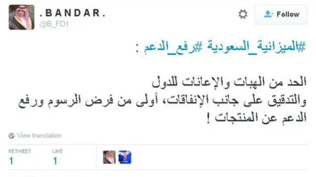 وطالب آخرون إيقاف حكومة بلادهم تقديم مساعدات لدول أخرى قالوا إنها كانت المستفيدة من ميزانية 2015 في حين أن الشعب السعودي أولى بتلك المساعدات".
