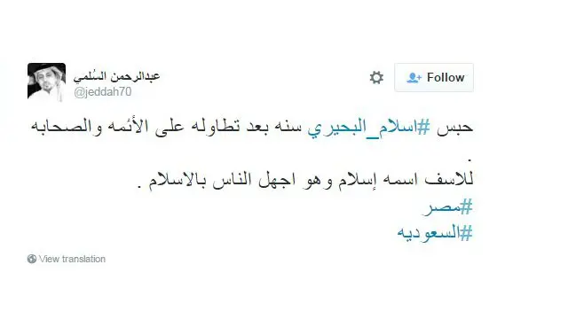 أثار قرار سجن مقدم البرامج الدينية والباحث المصري إسلام البحيري جدلاً واسعاً بين مستخدمي تويتر في مصر.