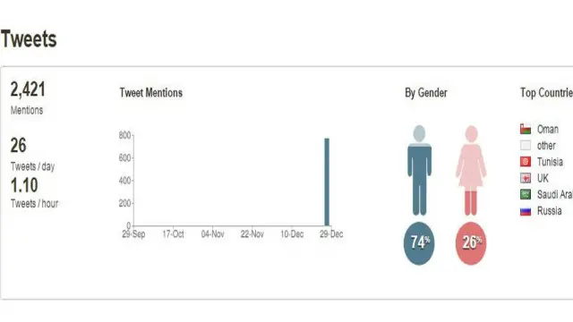وتجاوز العدد الإجمالي للتغريدات المتعلقة بالموضوع أكثر من 28 ألف تغريدة خلال أربع وعشرين ساعة.