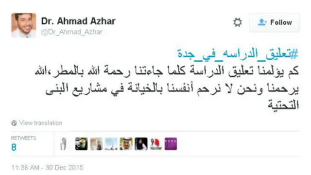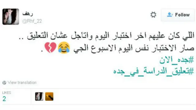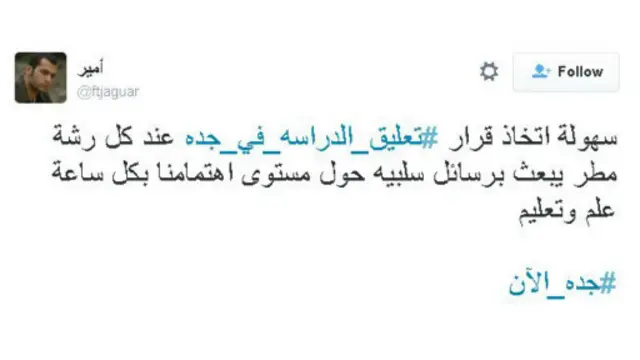 ودشن نشطاء على موقع تويتر هاشتاغ بعنوان #تعليق_الدراسه_في_جده و#جده_الان، لمناقشة القرار وتأثيره على الطلاب.