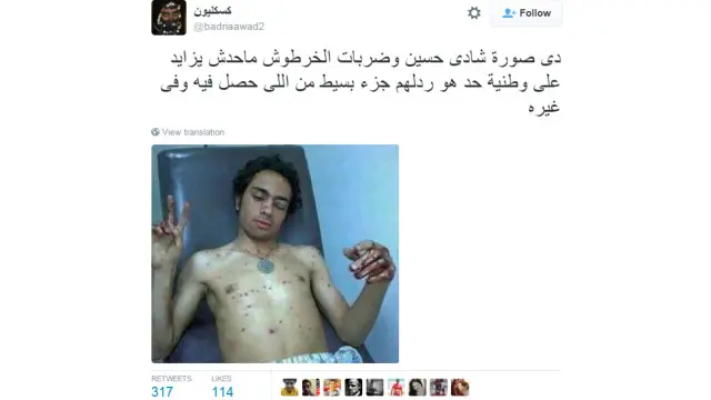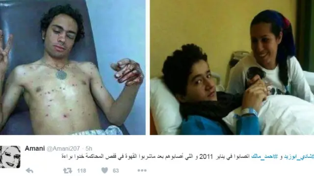 ونشر المغردون ايضا صورا لمالك، بجانب صورة شادي التي عرضناها عليكم، واصفين إياها بإنها تظهره وهو مصاب في رأسه بعد اشتراكه بمظاهرة خلال أحداث الـ25 من يناير.