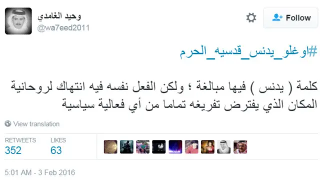 وأطلق مغردون هاشتاغ #اوغلو_يدنس_قدسيه_الحرم للتعبير عن غضبهم إزاء ما حدث خلال استقبال أوغلو، ووصفوا ذلك بأنه تصرف غير لائق.