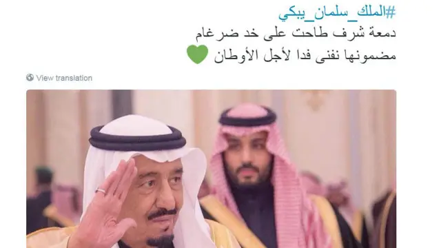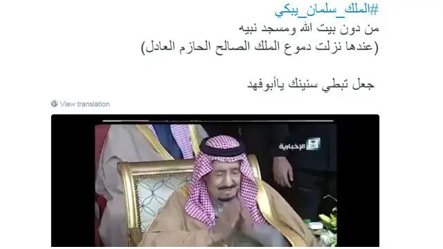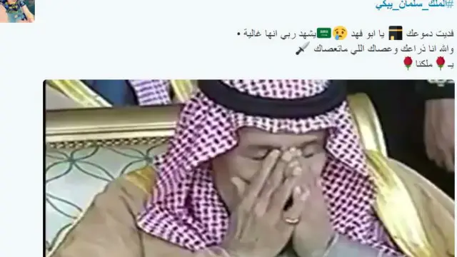 وتداول المستخدمون فيديو للملك وهو يبكي، وهاشتاغ #الملك_سلمان_يبكي، واستخدم في حوالي 59 ألف تغريدة.