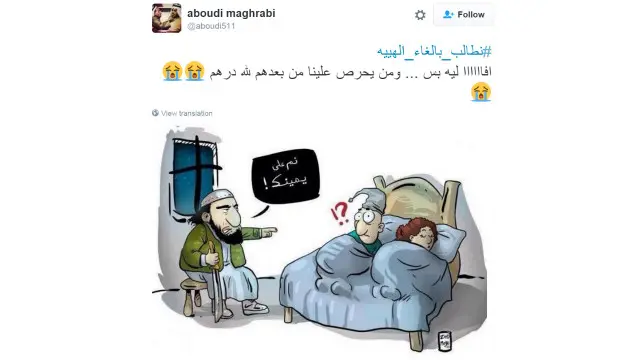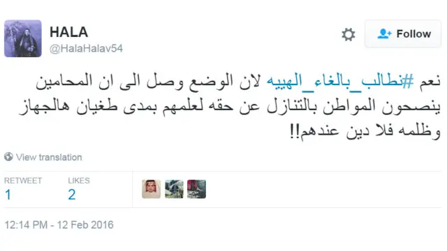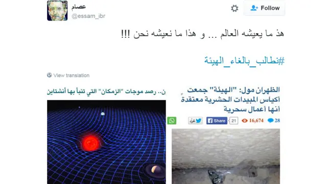 وانتشر هاشتاغ بعنوان "نطالب بإلغاء الهيئة" صباح الجمعة ليظهر في أكثر من سبعة آلاف تغريدة على مدار السابقتين لكتابة هذا التقرير.