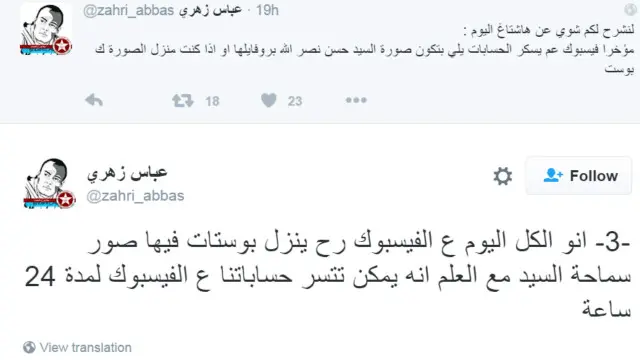 ننتقل إلى لبنان، حيث يشن مستخدمو مواقع التواصل حملة ضد موقع فيسبوك، قائلين إنه يغلق حسابات تنشر صور حسن نصر الله زعيم حزب الله اللبناني وردا على ذلك أطلقوا هاشتاغ بعنوان #قاوم_بصورة وعملوا على نشر صور نصر الله عبر حساباتهم.