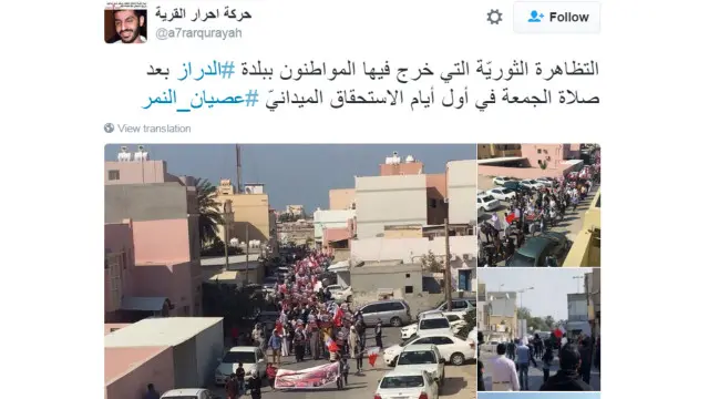 وظهر هاشتاغ #عصيان_النمر في نحو خمسة آلاف تغريدة على مدار الأربع وعشرين ساعة الماضية.