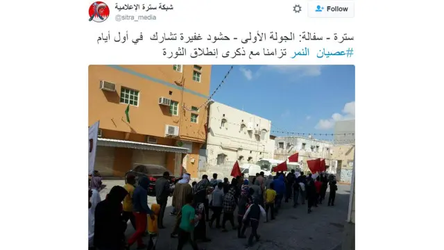 ونشر المستخدمون صورا لمسيرات خرجت اليوم في البحرين.