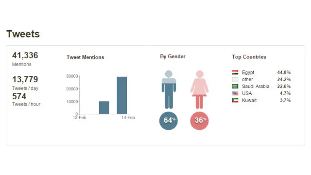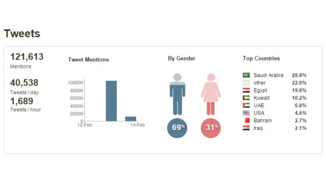 سيطرت الاحتفالات، بعيد الحب، أو الامتناع عنها، على مواقع التواصل الاجتماعي الأحد، بينما أهتم المستخدمون في مصر بخبر إلغاء حكم سجن الضابط المتهم بقتل شيماء الصباغ. ونجد اهتماما ايضا بالدوري الانجليزي الممتاز ومباراة أرسنال وليستر سيتي.