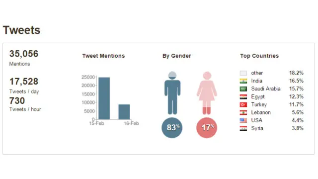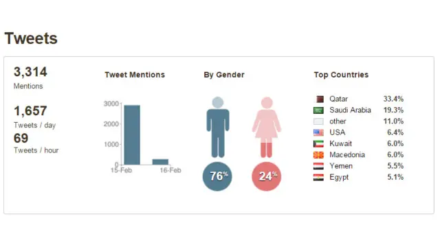 وعلى الرغم من تدشين الهاشتاغ عبر حسابات سعودية، يبدو إن أكثر البلدان استخداما له هي قطر، كما يُظهر الرسم التحليلي التالي.