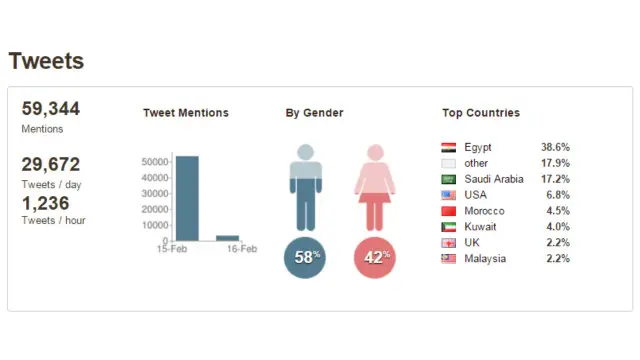 وظهر الهاشتاغ في قرابة 60 ألف تغريدة على مدار الأربع وعشرين ساعة الماضية، ونعرض عليكم أكثر البلدان استخداما له في الرسم التحليلي التالي.