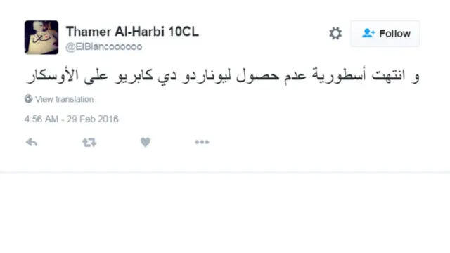 وأخيرا تحقق الأمل الذي انتظره الكثير من المغردين من عشاق النجم ليوناردو ديكابريو وفاز بأوسكار أفضل ممثل.