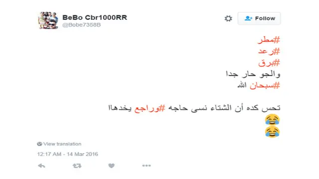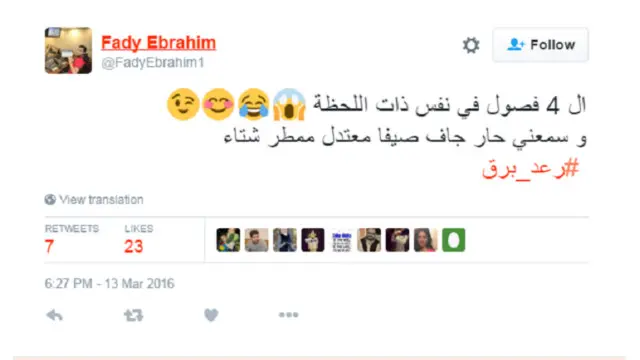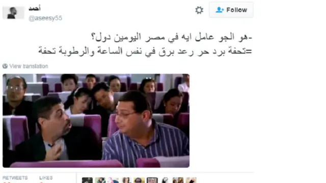 وتعامل أغلب المغردين بحس فكاهي ساخر مع الوضع المناخي الملتبس والذي يبدو أنه جديد على مصر.