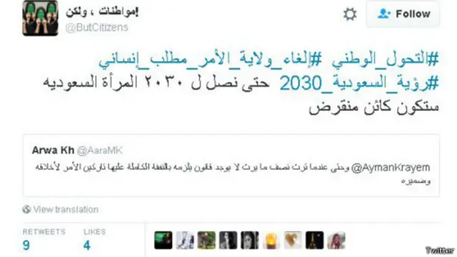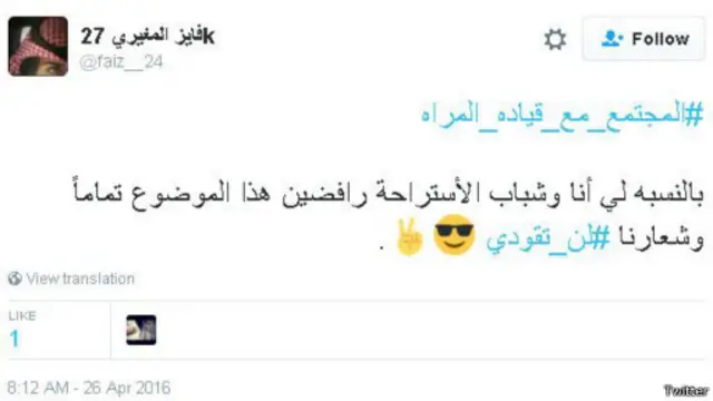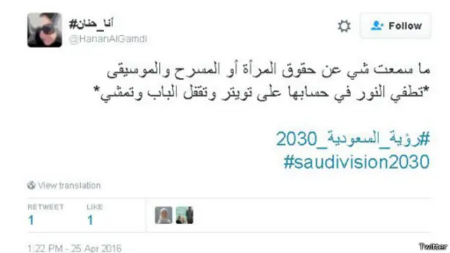 في المقابل، عاب المغرد نوف الغامدي، على تلك المطالبات، فكتب: في ظل الرقي التطور والرؤيه المستقبلية للوطن من المؤسف أن يكون اناس يتجاهلون كل هذا ويناقشون قيادة السياره والسينما #رؤية_السعودية_2030."