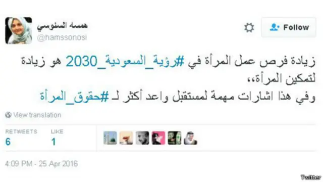طالبت مغردات بالمزيد من الحريات، حيث علقت المغردة، مي عبد العزيز، قائلة: " مازلنا ننتظر مايخص المرأة ، التحول بدون حقوق المرأة بالنسبة لي فقاعه #رؤية_السعودية_2030."