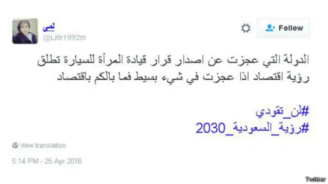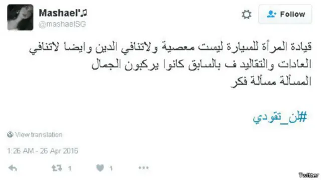 وعلى إثرها، عاود هاشتاغ #لن_تقودي للانتشار مرة أخرى، ليتجدد النقاش حول قيادة المرأة للسيارة، وينقسم المغردون بين معارض ومؤيد لها.