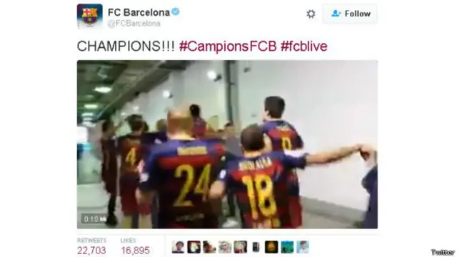 بدوره، دشن نادي برشلونة عبر حسابه على تويتر هاشتاغ"#CampionsFCB"، الذي نشر فيه مجموعة من الصور ومقاطع الفيدو لاحتفالات لاعبي الفريق بلقب البطولة.